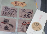 | その後新田、足利双方の血を引く岩松家が金山城を建て、現在の太田市を治めました。ここは江戸時代は養蚕が盛んな地、蚕の敵ネズミ避けに、岩松家の当主が4代にわたり「猫絵」を残しました。可愛い猫絵の展示が行われており、クリアファイルと一筆箋を購入。 |