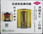 若狭局が持ち帰ったとされる頼家公位牌や苦しみから逃れる為に祀った蛇苦止観音があります |